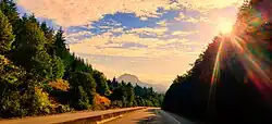 Highway 101, which first opened in 1962, is divided into two separate land segments, with a ferry link in between. The highway is maintained by Capilano Highway Services.[2] Despite its location on the mainland, the highway is unique for not being connected to the rest of the British Columbia highway system. Access to the highway can only be obtained by taking ferries from Horseshoe Bay to the south end in Gibsons or Comox to Powell River. Highway 101 between Langdale and Powell River is designated as a feeder route of the Canadian National Highway System.[3] The highway is sometimes considered by locals to be an extension of the much more famous U.S. Route 101 that runs all the way to Los Angeles, however there is a 300 km gap between the two highways and the origin of the BC-101's number may not be related to US 101.