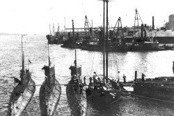 Three H-class submarines (lower left)