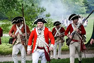 During the 18th century the weapon of choice was the Brown Bess musket which had been used by the army since the 1730s.[17] There were many different patterns of musket fired during the 18th century, but the weapon normally favored a flintlock mechanism which was more reliable than the preceding matchlock system used during the English Civil War in the 17th century.[18]
