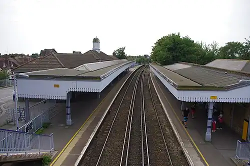 Broadstairs railway station is on the Chatham Main Line in England, serving the seaside town of Broadstairs, Kent. It is 77 miles 9 chains (124 km) down the line from London Victoria and is situated between Margate and Dumpton Park.