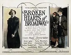 Broken Hearts of Broadway is a 1923 American silent drama film produced and directed by Irving Cummings and starring Colleen Moore, Johnnie Walker, and Alice Lake. It is based on a 1917 play Broken Hearts of Broadway by James Kyrle McCurdy.[1][2]