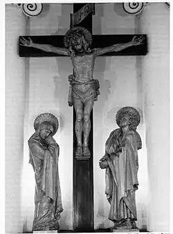 - A "Crucifixion Group" for the Church of the Virgin Mary Queen of Poland in Brzoza (1937). According to Henryk Kłobucki (the artist's nephew),[2] the figures were part of an altar retable located originally in the Church of the Sacred Heart of Jesus in Bydgoszcz. The altar was then moved to Brzoza shortly after 1945.