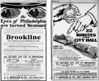 - ^ "To Open New Suburb, A.E. Mueller and Co. will Develop "Brookline"". Philadelphia Inquirer. June 29, 1907.