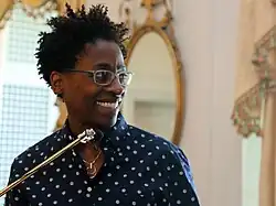 Brown Girl Dreaming is considered to belong in the category of children's middle-grade literature, and it is also classified as a memoir since the content directly relates to real events that happened in the author's life.[2] The book is written in free verse and haiku. Because of this, scholar Flynn Richard argues that the genre of the book is best described as a verse memoir rather than a verse novel and that this book is an important example of a hybrid form for an adolescent audience.[1] Another scholar, Giselle Anatol, argued that the book could be considered a work of modern gothic fiction due to the presence of ghosts in the form of her departed family members throughout the novel.[3] Since the book also tracks the author's introduction to writing as a creative endeavor, this book has also been classified as a Künstlerroman.[4] Woodson herself commented on the form of the book as a collection of poems in an interview, stating that her intention behind this choice was to make poetry more "accessible" to all readers regardless of ability.[5]