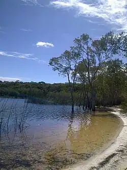 Brown Lake (Bummeria) is a perched lake on North Stradbroke Island, in South-East Queensland, Australia.[4] The ecosystem is an example of a coastal non-floodplain sand lake[5] and is characterised by acidic water, nutrient-poor and sandy soil, shrub-like vegetation and wet heathland.[3]