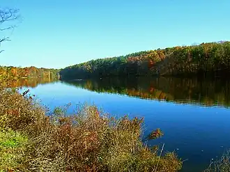 Browns Pond, in the Town of New Windsor in Orange County, New York, United States, is the smaller of two reservoirs for the nearby City of Newburgh. The 0.3 square miles (78 ha) pond is hook-shaped, with the circuitous Mount Airy Road running past both ends.[1]