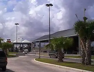 The Brownsville Veterans Port of Entry opened in 1999 with the completion of the Veterans International Bridge at Los Tomates. The bridge was built primarily to divert commercial freight traffic away from the busy downtown bridges, but about a third of the passenger vehicles also cross at this point.[1] The Veterans Port of Entry is the easternmost US-Mexico border crossing, and is by far the newest of the three crossings between Brownsville and Matamoros.