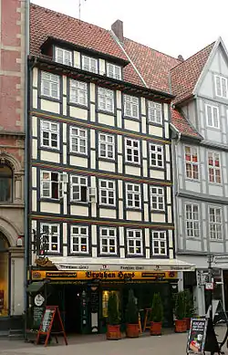 Broyhan House (German: Broyhanhaus) is a residential and commercial building constructed in 1576 in Hanover's historic old town (Altstadt). It is the second-oldest preserved half-timbered building in Hanover, and stands on the cellar walls of an earlier building dating to the 14th century.[1] The house is named after Cord Broyhan,[2] a brewer who lived in an earlier building from 1537 until 1561.[a][3]