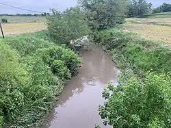 The stream headwaters arise approximately six miles southeast of Bedford, Iowa and two miles north of the Iowa-Missouri State Line at 40°36′42″N 94°37′39″W / 40.61167°N 94.62750°W[1] at an elevation of approximately 1250 feet.[4] The stream flows southward into the northwest corner of Worth County, Missouri. Two miles to the south it veers to the right and enters Nodaway County. It flows south passing under Missouri Route 246 about one mile west of Sheridan. It continues to the south and enters the Platte River just west of the city of Parnell.[5] The confluence is at 40°25′59″N 94°38′05″W / 40.43306°N 94.63472°W and an elevation of 1001 feet.[1]