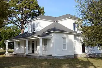 The Bryant-Lasater House is a historic house at 770 North Main Street in Mulberry, Arkansas. It is a 1+1⁄2-story wood-frame structure, set on a foundation of molded concrete blocks, with a shallow-pitch pyramidal roof (pierced on each side by a hip-roof dormer), and a hip-roof porch extending across the front. A rear porch has been enclosed. Built c. 1900, the house is locally distinctive for its architecture, as a particularly large example of a pyramid-roofed house, and for its historical role as the home of a succession of locally prominent doctors, including Dr. O. J. Kirksey, who operated a maternity hospital in the house.[2]
