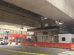 As part of this project, the Bryn Mawr station was rebuilt with a wider platform and new signage, lights, security cameras, and elevators. Reconstruction began in May 2021 and was completed in July 2025.[5][6][7] During Stage A of the reconstruction, the northbound tracks were closed, with northbound trains using the southbound side of the original platform and southbound Red Line trains stopping at a temporary side platform on the original Purple line express track. Unlike a similar renovation at the same time at Argyle, where both platforms used a common temporary entrance, northbound trains used the original entrance while southbound trains used temporary entrance half a block north, not connected to each other inside the paid area.[8] During Stage B (2023–25), the two western tracks were out of service, with the new eastern tracks carrying all trains, with a side platform located between each set of tracks just south of the original and permanent new platform. Only southbound trains stopped at Bryn Mawr since there is no space to build a temporary northbound platform.[9] When Stage B finished on July 20, 2025, the station returned to its original track configuration.[10]