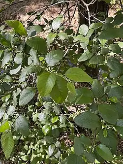 Buckhorn Creek supports a population of native Coastal rainbow trout in years where there is enough flow to support the fish over the dry summer season.[7] The Central California Coast Steelhead DPS is federally listed as threatened as a result of habitat loss and degradation, as well as the widespread installation of migration barriers.[8] Rainbow trout migrate from Upper San Leandro Reservoir to Buckhorn Creek to spawn during periods of high water. They have been observed in the lower and upper reaches of the creek on multiple occasions between the 1970s and early 2000s. However, due to its relative low flow and poor instream substrate for spawning, Buckhorn Creek has limited value to trout restoration.[1][7]