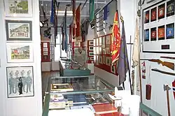 The Buekorps Museum was established in 1977 and is located in Murhvelvingen on Østre Muralmenning. Murhvelvingen was constructed as a private residence after a great fire disaster in Bergen in 1561. Construction was directed by nobleman Erik Ottesen Rosenkrantz til Arreskov (1519-1575), who was commander Bergenhus from 1560 to 1568. The building was damaged by fires in 1625, 1640, and 1643 and was repaired in 1651–52. The current pavilion was built after the Bergen fire of 1702.[3] [4][5]