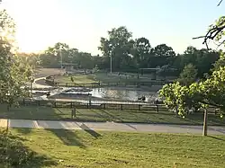 Named after Houston architect, Johnny Steele, the dog park opened in January 2015. The 2 acre park consists of separate play areas for large and small dogs, a pond where dogs can swim freely, and dog washing areas.[6] Due to its proximity to the Bayou, it is designed to handle periods of flooding from storms.[7][8]