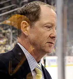 Team president Larry Quinn fired general manager John Muckler, who had a noted feud with Nolan.[67] Hasek, who supported Muckler, openly told reporters at the NHL Awards Ceremony he did not respect Nolan.[61] The new general manager, Darcy Regier, offered Nolan just a one-year contract, but Nolan refused. Regier then pulled the contract off the table and did not offer another one, ending Nolan's tenure as Sabres coach.[68] Former Sabres captain Lindy Ruff was hired as head coach on July 21, 1997, agreeing to a three-year contract.[69]