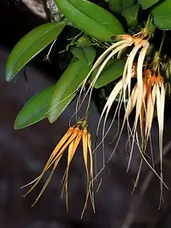 Bulbophyllum pecten-veneris is a flowering plant in the family Orchidaceae.[1][2] It is a species of orchid that is also known as the yellow-flowered bulbophyllum or golden comb orchid.[3]