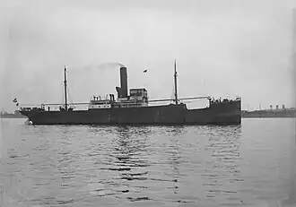 Also in 1924, Howaldtswerke built a fourth ship, to the same design, but for China Reederei. She was built as yard number 646, and launched as Eva. Her length was 250.8 ft (76.4 m); her beam was 38.5 ft (11.7 m); and her depth was 15.9 ft (4.8 m). Her tonnages were 1,504 GRT and 851 NRT. She had a single screw; driven by a three-cylinder triple-expansion engine that was rated at 143 NHP. She was equipped with submarine signalling. She was registered in Hamburg. Her code letters were RFHP.[4]