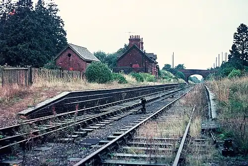It was furnished with the usual two platforms, station buildings (on the northbound platform) and passing loop and there were additional sidings on both sides of the line and further private sidings on a curve to the south east servicing local lime kilns. A goods shed, standard crane and cattle pen was also built next to the siding on the Northbound line.