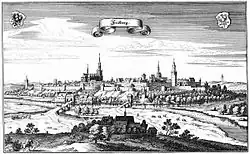 Following the Passau Treaty in 1552, the Reformation in its Lutheran variant was officially introduced in the burgraviate. From 1569, a church order shared with the imperial city of Friedberg was in force.[23] Despite this, the Burgmannschaft continued to include Roman Catholic members, and their numbers even grew over time. After prolonged disputes, Franz Heinrich von Dalberg was elected as the first Roman Catholic Burgrave in 1755.[24]