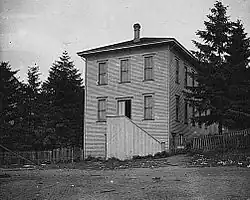 In 1882 Orson "Bug" Johnson (Orson Bennett Johnson[5]) was retained as a biology instructor at the University of Washington, bringing 20,000 animal specimens with him. Johnson immediately involved himself with the Young Naturalists, and the addition of his collection gave the club the largest natural history collection in the Pacific Northwest. Under Johnson's direction, the Young Naturalists began expanding this nucleus of specimens and artifacts, which were stored in a backroom of the Denny home.[6] A permanent structure to house the growing collection was built on the Territorial University's campus in 1886, with the club soliciting donations to fund its construction. Many specimens in the collection were regularly borrowed by university faculty to assist in instruction.[7]