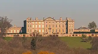 A Jacobean house on the site was in the possession of John Harington, 1st Baron Harington of Exton who sold the manor to George Villiers, 1st Duke of Buckingham (1592-1628) in around 1620.[1] Buckingham's house is said to have been the venue for a banquet for Charles I and Henrietta Maria, when Jeffrey Hudson, the Rutland Dwarf, was produced from a pie.[a][1] The house was destroyed in the subsequent Civil War.[3] Buckingham's successor, the second duke sold the estate to Daniel Finch, 2nd Earl of Nottingham (1647-1730) in the 1670s.[4] The early Finchs were lawyers, Finch's father, Heneage having served as Lord Chancellor under Charles II.[5] Finch later determined to construct a new house on the site.[6]