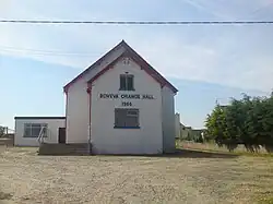 It has quite a large village shop, football fields and a primary school plus Orange Hall. Burnfoot has two churches, Bovevagh Church of Ireland (St. Eugenius) and Camnish Presbyterian Church.[2] The Church of Ireland are currently developing a new parish centre for the development of the parish. Burnfoot has its own community hall and youth clubs such as the Girls Brigade.[1] It has had a housing development called Rosebrook which added at least 15 houses to the area,[3] making the population now about 250. In 2010 a man appeared in court charged with provocative behaviour after removing a loyalist flag from a lamppost in the area. The judge stated he should be commended for his actions.[4]