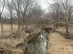 The name Burr Oak was also given to a church, a cemetery, and a road that are all nearby the creek.[5] Burr Oak Church dates back to 1859 and is located near the headwaters of Burr Oak Creek about 4 miles west of Skidmore.