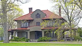 Burroughs–Foland Farm is a historic home and farm located at Livingston, Columbia County, New York. The main farmhouse was built in 1908, and is a 2+12-story, Mission Revival style, stuccoed hollow tile dwelling. It features a full-width, tripartite arched front porch, flanking side porches, and hipped roof of red barrel tile. Also on the property are the contributing carriage house (1908); original frame farmhouse (c. 1840, c. 1885, 1908); barn, cow stable, and silo (c. 1840–1860); truck and tractor building (c. 1870–1880); stable and carriage house (c. 1840–1860); piggery (c. 1860); engine house (c. 1908); and small dwelling house (c. 1910–1920).[2]: 5–8