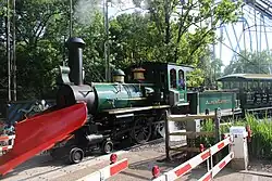 4-4-0 (American) | 1972 | Crown Metal Products | 1997[4] | Alpine-themed, painted in green livery. Originally built for the now-defunct Lakeside Amusement Park in Salem, Virginia, with American old-west theming. When acquired by Busch Gardens, the engine was rebuilt with a new smokestack, a new headlight, its pilot replaced with a snowplow, and its bell removed; however, it still retains a relatively American appearance compared to the other two engines. |