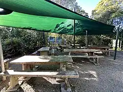 The Bushy Park Tarapuruhi Trust provides education programmes at the sanctuary for school children and other groups.[57] These programmes began in 2001,[58] and are supported by volunteer educators working in collaboration with educators from Whanganui Regional Museum and the Sarjeant Gallery, and rangers from the Department of Conservation.[59] An outdoor classroom is located adjacent to the former stables behind the homestead. The classroom, named Tāne Whakapiripiri, was opened in 2017 and seats 60–80 under waterproof shade covers.[60]