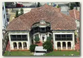 Butterfly House, also known as 23 Amber Road, was a unique house, with a convex, semicircular plan, the 'wings' of which gave rise to the 'butterfly' nickname for the house. It is not, in fact, laid out on a true butterfly plan in the more usual Arts and Crafts sense of the name. It was the only historic residence in Singapore to be built using this plan form, and was unique in Southeast Asia. Most of the building, including its iconic curved wings were demolished in 2008 by developers in order to make way for a high-rise residential tower on the site, leaving only a small portion of the street-facing front of the house as a token facade to the generic residential tower behind, losing the part of the structure that gave the house its moniker.