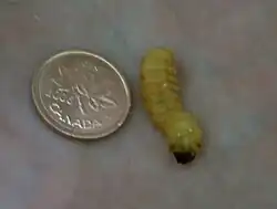 Butterworms, like mealworms, are used as food for insectivore pets, such as geckos and other reptiles, as their scent and bright color help attract the more stubborn eaters. They are also called tebo worms or trevo worms, and are high in fat and calcium. They are difficult to breed in captivity, and most are imported directly from Chile. They are usually irradiated to kill bacteria and prevent pupation as the moth is an invasive species.[2]