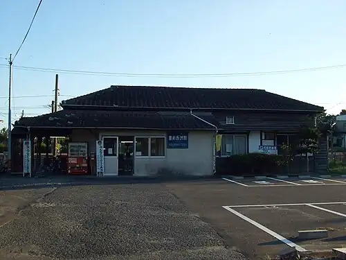 The station, which is unstaffed, consists of an island platform serving two tracks. The station building is an old wooden structure of Japanese design and serves only to house a waiting area and an automatic ticket vending machine. Access to the island platform is by means of a footbridge.[2][3]