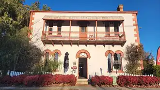 The mill house or former manager's house is a two-storey brick building with a corrugated steel roof. The roof is a gable with a skillion to the rear. Decoration includes rendered quoins and well crafted gothic bargeboards. The front of the building features a cantilevered balcony to the upper floor, complete with filigree work and a convex iron roof. Windows to this front facade are round arched with label moulds and there is a fanlight over the front door.[1]