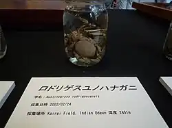 - ^ Watanabe, Hiromi K; Chen, Chong; Kojima, Shigeaki; Kato, Shogo; Yamamoto, Hiroyuki (2020-09-01). "Population connectivity of the crab Gandalfus yunohana (Takeda, Hashimoto & Ohta, 2000) (Decapoda: Brachyura: Bythograeidae) from deep-sea hydrothermal vents in the northwestern Pacific". Journal of Crustacean Biology. 40 (5): 556–562. doi:10.1093/jcbiol/ruaa045. ISSN 0278-0372.