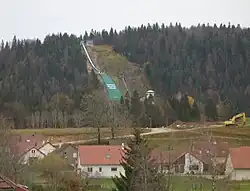 The ski jumps are located in Chaux-Neuve, in Franche-Comté.[2] This small commune in the Doubs is situated at an altitude of 1,000 meters in the Jura Mountain Range, 6 km south of Mouthe, a village nicknamed "The Little Siberia of France" due to its record low temperature of −36.7 °C, the coldest ever recorded in France.[3] Mouthe traditionally hosts the finish line for the Transjurassienne race.[4]