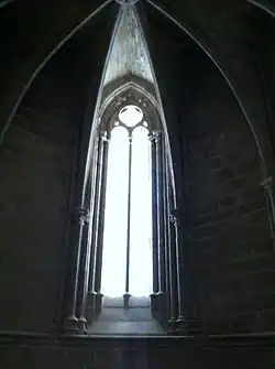 The abbey of Santa María de San Salvador de Cañas for Cistercian nuns was founded in this town by Lope Díaz I de Haro and his wife Aldonza in 1169 and 1170.[1] Its wealth and power culminated during the 13th century under the abbess Urraca Díaz de Haro, between 1222 and 1262.[2] The nuns benefited from the patronage of the Haro family until its extinction in 1322.[3] The community is still active today and retains fragments of its medieval library, particularly a complete Burgundian antiphonary from around 1200, and a Castilian missal from 1267 to 1279.[4]