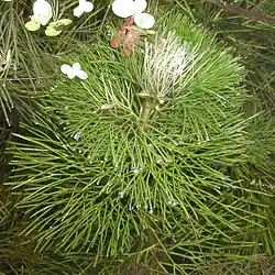 Cabomba caroliniana, commonly known as Carolina fanwort,[3] is a rhizomatous,[4] aquatic,[5] perennial,[3] herb[5] native to North and South America.[2] Having been a popular aquarium plant,[6] it has been exported around the world, and has become an invasive species in Europe and Australia.[7][8]