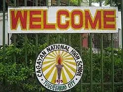 Cagayan National High School, abbreviated as CNHS and locally known as Cagayan High (Filipino: Pambansang Mataas na Paaralan ng Cagayan), is the universal high school of Region 2. It is located in Taft Street, Tuguegarao City, Cagayan, Philippines. Established in 1905, it is the oldest public secondary level school in Cagayan and the province's premier secondary school.[2]