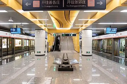 Caihuying station (Chinese: 菜户营站; pinyin: Càihùyíng zhàn) is a subway station on Line 14 of the Beijing Subway.[1] The station opened on December 31, 2021.[2]