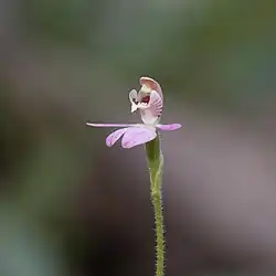Caladenia pygmaea, commonly known as the pygmy finger orchid, is a plant in the orchid family Orchidaceae and is endemic to South Australia. It is a ground orchid with a single erect, sparsely hairy leaf and a single pink flower with red stripes on the labellum. It was formerly known as a variety of Caladenia carnea.