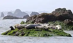 The California Coastal National Monument is located along the entire coastline of the U.S. state of California. This monument ensures the protection of all islets, reefs and rock outcroppings along the coast of California within 12 nautical miles (22 km) of shore along the entire 840-mile (1,350 km) long coastline. Conservative estimates are for at least 20,000 such outcroppings.[3] The monument was created by Bill Clinton via Presidential proclamation on January 11, 2000, with the authority in section two of the Antiquities Act of 1906. As of 2014, the monument has expanded to 2,272 acres (919 ha). The U.S. Bureau of Land Management, an agency of the U.S. Department of the Interior that manages the monument, has developed gateways in cooperation with other agencies along the California coast to introduce the monument to the public. These include the Trinidad, Point Arena, Fort Bragg-Mendocino, Pigeon Point Lighthouse, Piedras Blancas State Marine Reserve and Marine Conservation Area, and the Palos Verdes Peninsula.[4] Although being the most-viewed national monument in California, people are usually unaware that the entire coastline is a national monument.[4]