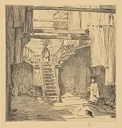 Old Chinatown, San Francisco[17] | Etching | 5 3⁄16 in (13.18 cm) × 4 15⁄16 in (12.54 cm) | National Gallery of Art | Made from a 1904 drawing[2] Gift of Mrs. Childe Hassam[18] |