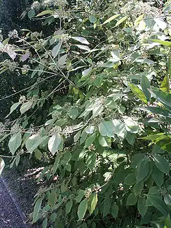 Callicarpa cathayana is a species of beautyberry. It is grown in gardens and parks as an ornamental plant for its decorative pink flowers and berries. The purple berries are a drupe. They are not edible for humans. Birds eat the berries and disperse the seeds. The species are endangered in the wild. Callicarpa cathayana is native to China.