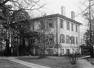 Camak House, at 279 Meigs Street, Athens, Georgia, was built in about 1834 by James Camak[2][3] and featured in Georgia's early railroad history. An example of Federal architecture, it has a number of features unusual for its period, including a kitchen within the raised basement, and closets. Both main floors have four rooms; the stairwell has a mahogany railing, and moldings and trim were made using a Greek key pattern. After long service as a family home, it was used as a Masonic Lodge before being bought by Coca-Cola Enterprises. In 1975 Camak House was listed on the National Register of Historic Places, but the building had by then fallen into disrepair. It was restored and used as the offices of a law firm. As of December 2011, it is for sale.[4]