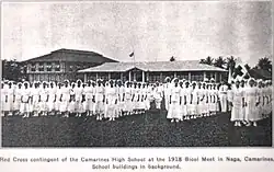 The Philippine Commission enacted Act No. 74 creating the Department of Public Instruction on January 21, 1901,[3] and later that year, American educators known as Thomasites arrived in Ambos Camarines (the province's name before it was split into two, Camarines Sur and Camarines Norte) to teach the Bicolanos.[4] On July 15, 1902, the school was launched as the Provincial High School of Nueva Caceres (former name of Naga City when it was still a town). Headed by its first principal Mr. Frank Crone and assisted by Ms. Minerva Udell, the institution started with 70 students and 4 American mentors. The attendance increased steadily and by the end of the first term there were 200 students. Then it was transferred somewhere on Mabini Street (now San Francisco) until it was transferred in 1915 to Via Gainza (now Peñafrancia Avenue), its present location. It was by then known as Camarines High School.[5]