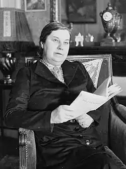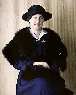 During the First World War, she set up the Comité de secours national, the national relief committee with her father. She also founded and ran a temporary hospital in Paris, which earned her the Medal of French Gratitude.[1] In 1916, she was asked to participate in the organization of women in the workforce in place of the men who had gone to battle. Benefiting from her experience as head of the hospital, she created a recruitment centre for women, which auditioned, tested, and employed both salaried employees and volunteers in the services sector.[2] More than 20,000 women were employed through this program. The treatise she published in 1919, "Mobilization féminine en France", documents the contribution of these women to the Allied victory.[3] This document is notable for its unique content as well as its methodical and professional form. It is carefully contextualized and enriched with statistics.[4]