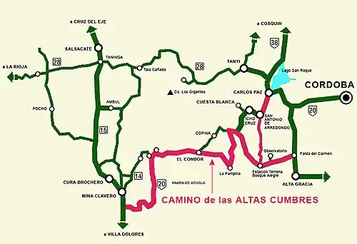 Under an agreement between the province of Cordoba and the national government, provided for the transfer of certain routes, touching the new road of approximately 126 km, be converted into a section of the National Route 20 (Argentina).