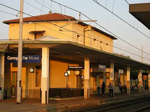 Campiglia Marittima railway station is an Italian railway station on the Tirrenica railway line. It serves as a junction for the line to Piombino that connects here with the Tirrenica railway.