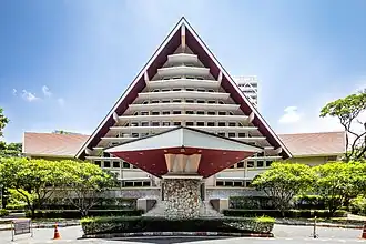 Maha Thirarachanusorn Building (1983), designed by Vira Buranakan, houses the Chulalongkorn University Office of Academic Resources, often known as the Chulalongkorn University Library: Chula Library.